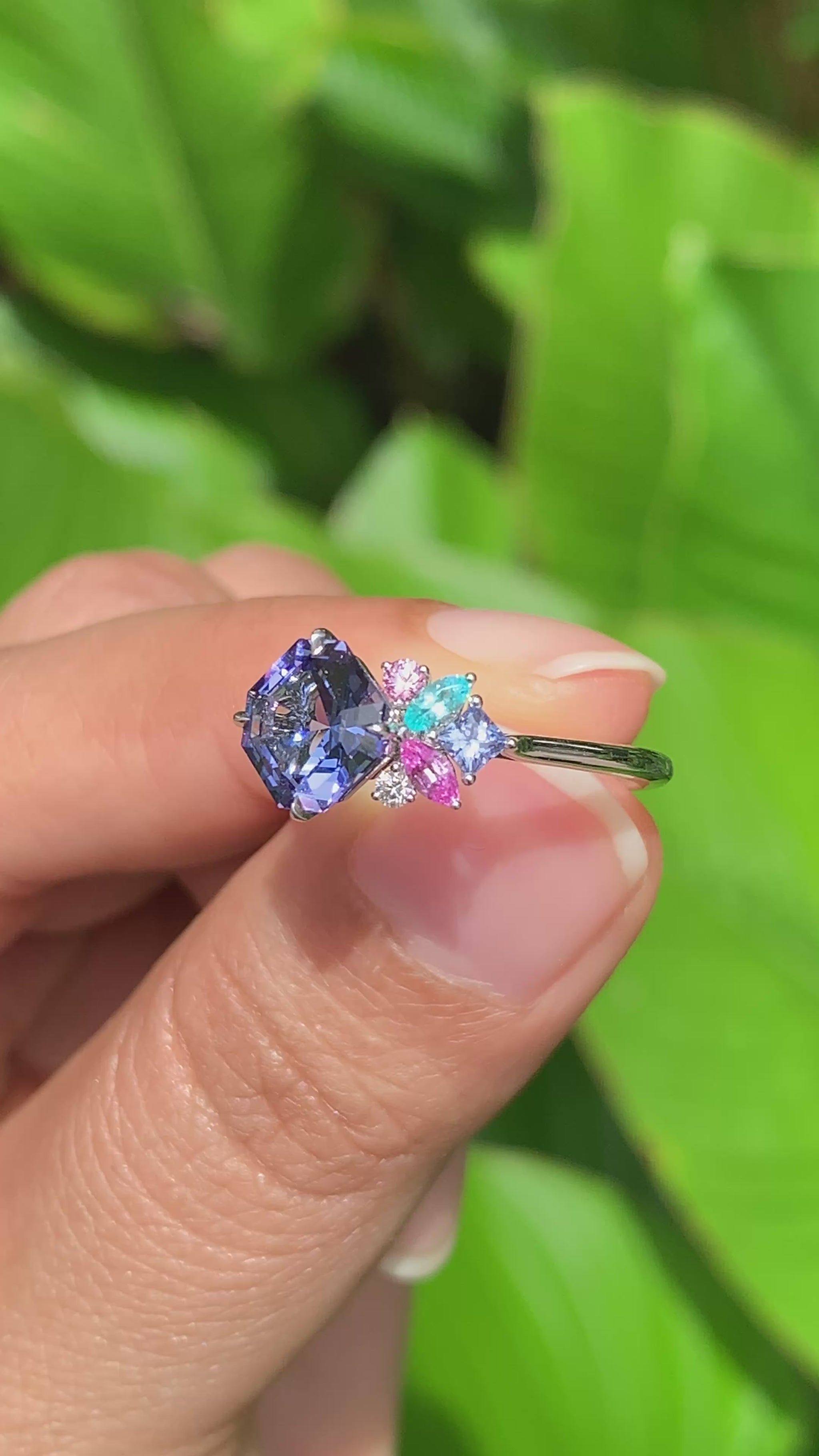 Our signature Candy Cluster setting is the fun part - a little garden of gems in mixed cuts alongside the Tanzanite. It’s joyful and feminine, modern and playful. This is a ring we can rarely keep in stock.