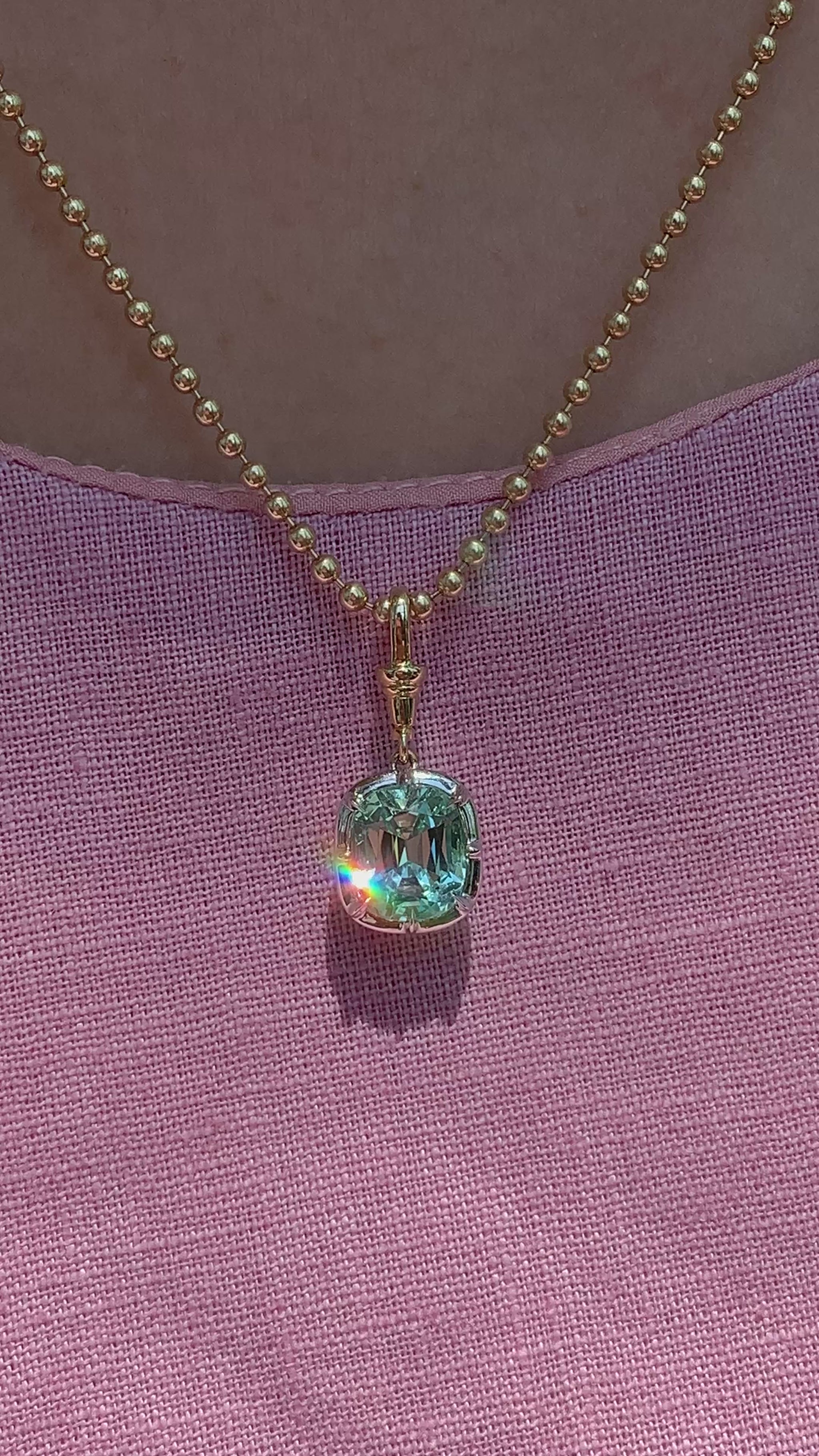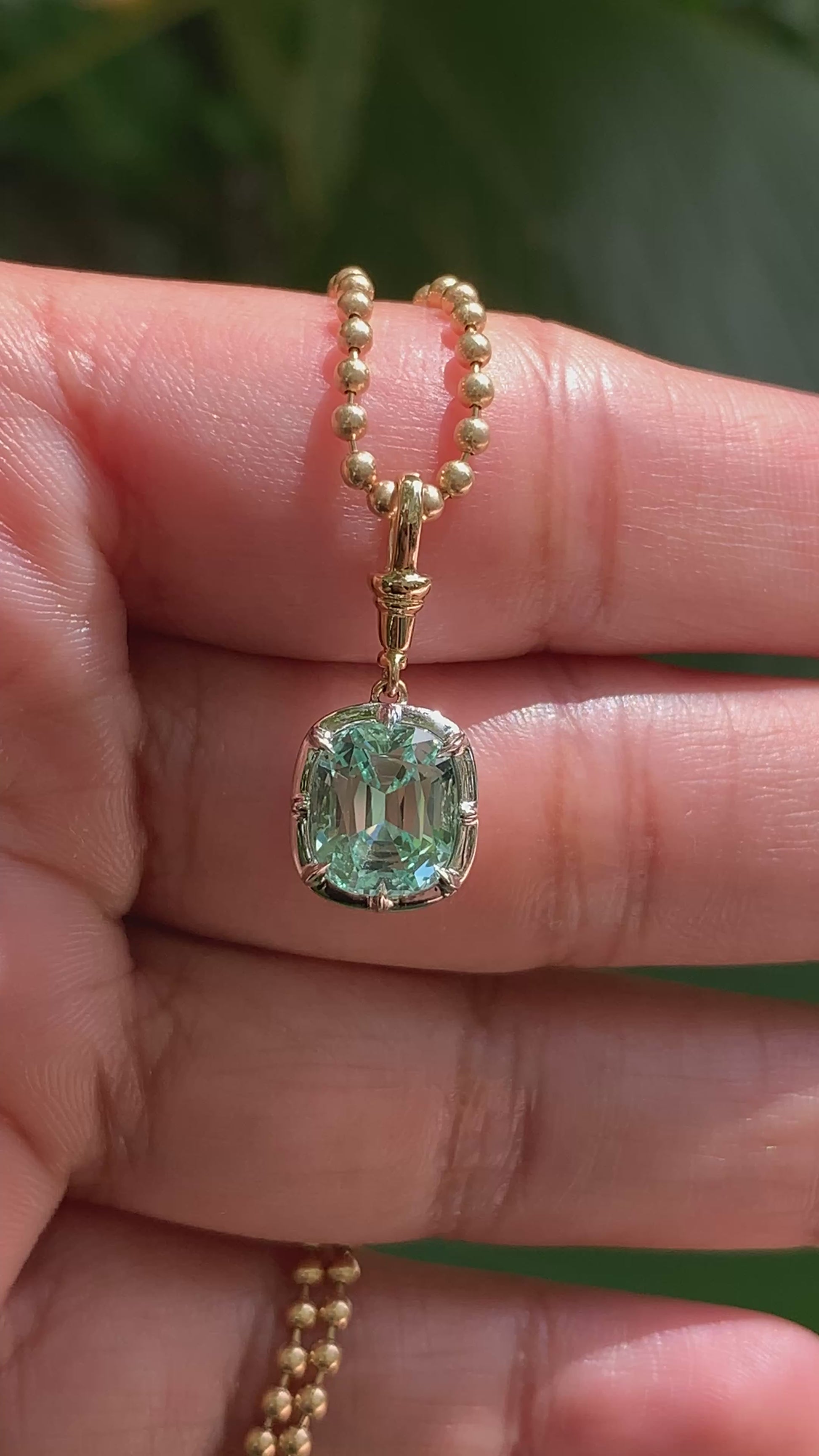 Collet Pendant - Cushion Neon Beryl - Made to Order