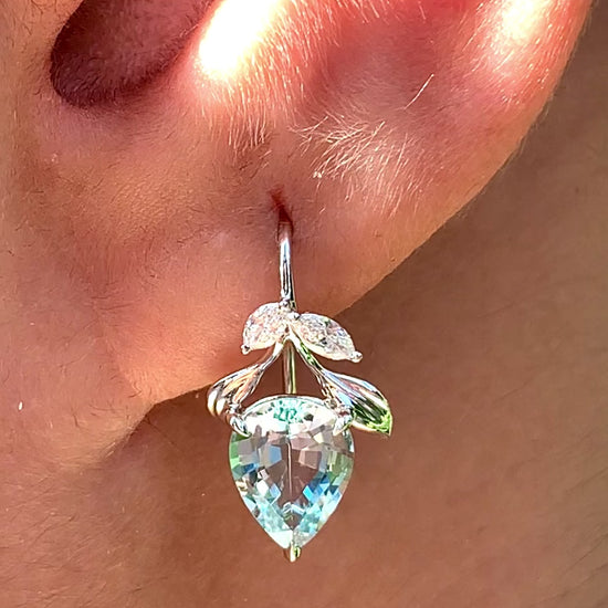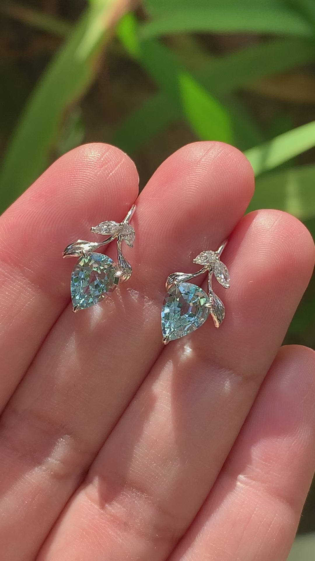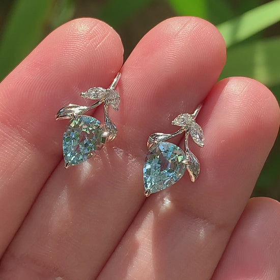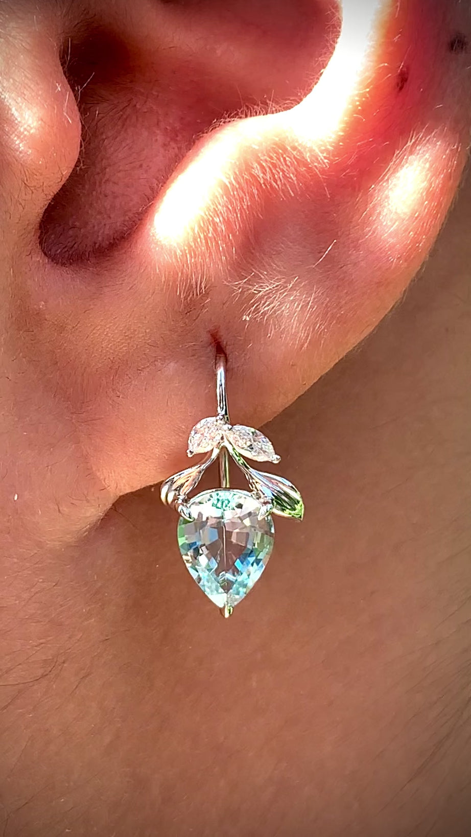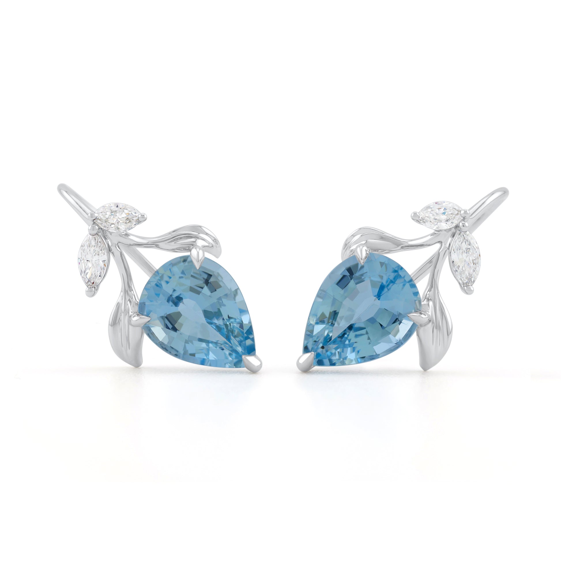 Imagine juicy, blue fruit on a brilliant white gold plant. The gorgeous pear-shaped Aquamarines in these earrings are seriously eye-catching.